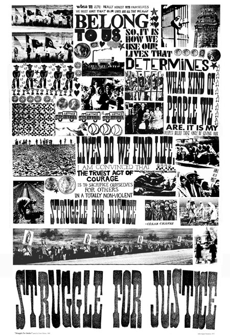 | The poster, STRUGGLE FOR JUSTICE, was first created forty years ago, in 1972 to help raise money for the United Farm Workers. The original printing was limited to one hundred posters.