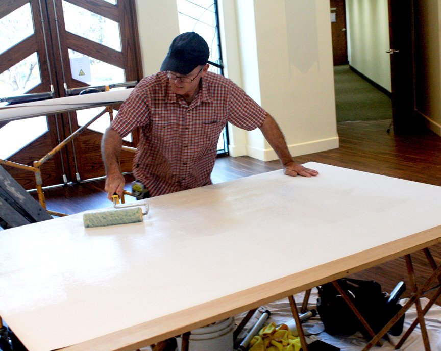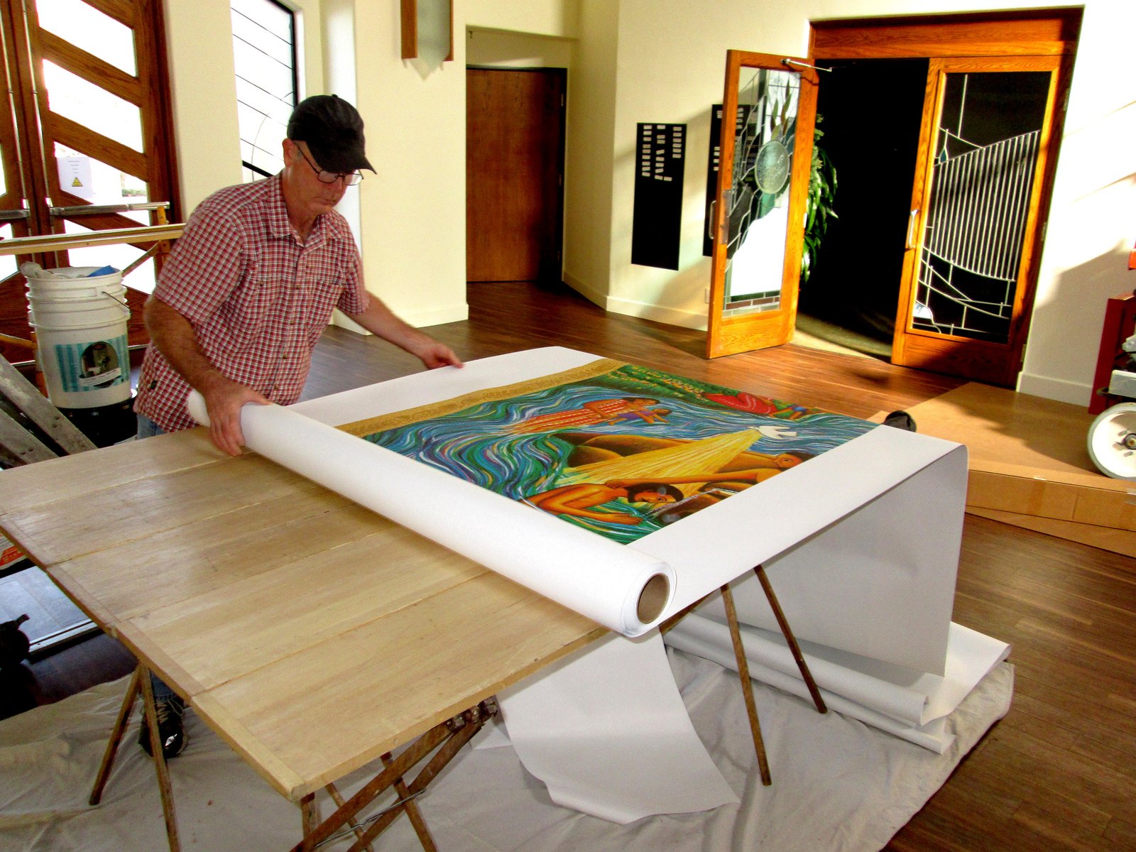 and the 6′ x 8′ wall covering of PSALM 85 is displayed