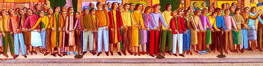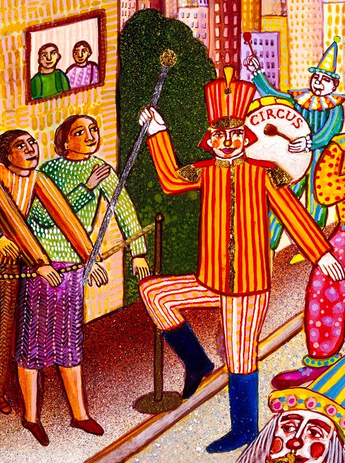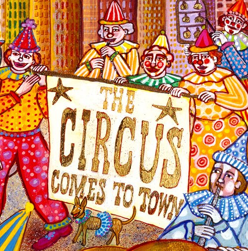 Spectators line the streets. They lean over railings and look over shoulders, while families rush to their windows, all trying to catch a glimpse of the wonderful surprises of the great circus parade.