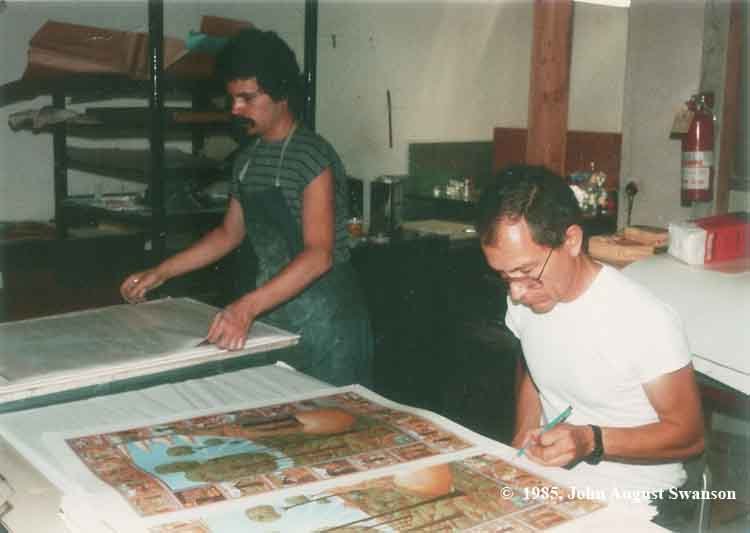 In the early 1970s, I visited the Frick Museum in New York City and saw Giovanni Bellini’s 15th century masterpiece, St. Francis in Ecstasy. I was inspired by the artwork and created many small sketches and drawings. Through the 1970s and into the early 1980s, I made many paintings of St Francis in nature. From June, 1985 to August, 1985, I printed a limited edition, six-color lithograph at Efram Wolff Studio, which I called FRANCIS OF ASSISI. Many years later, I reexamined the pastel colored lithograph, and decided to further refine the artwork. Using one of the lithograph prints as an underpainting, I painted on top of the work adding more colors and details. The artwork became one of my most elaborate paintings, Francis of Assisi (Painting, 1999). The painting is now in the permanent collection of Emory University’s Candler School of Theology.I wanted to make the artwork available for more people to enjoy, and I wanted to further refine the work. In May of 2019, I began to gather materials; photos of the painting and scans of the lithograph, in order to create a new giclee based on the earlier artwork. From May through September, we combined patterns from the 1985 lithograph with details from the 1999 painting, as well as many new drawings, refining the image. The colors were further intensified and enhanced, and line-work was refined. In consideration of all the reimagining, reworking, and time it took me, I feel I have given my best to this artwork. I approved the giclee edition on September 25, 2019, and announced it on October 4, 2019 – The Feast of St Francis.