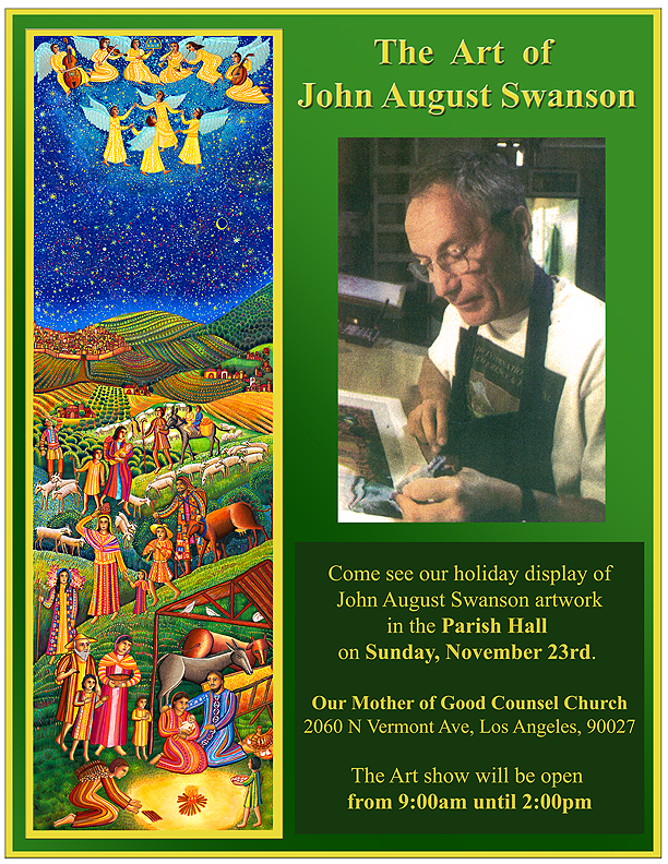 Come visit our holiday art show at Our Mother of Good Counsel Church parish in Los Feliz. The art show will take place on Sunday, November 23rd at Our Mother of Good Counsel Church2060 N Vermont AveLos Angeles, CA 90027 after the 8:00am Mass, and until 2:00pm.